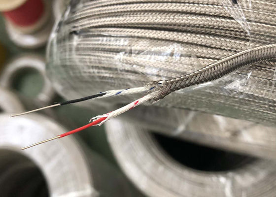 2x0.5mm 2x0.6mm 2x0.8mm Tipe E Thermocouple Extension Wire Metal Shield Fiberglass/PFA Terisolasi Thermocouple Wire